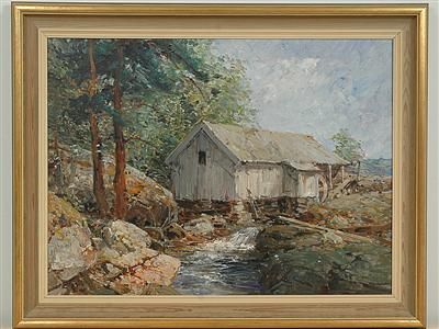 Kvarn vid vattendrag.