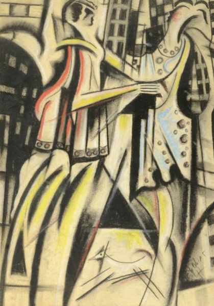 Charcoal and coloured chalk drawing on paper