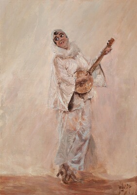 | A dancer dressed as Pierrot, playing the mandolin | |