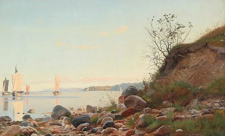 Coastal scene a summer day with numerous sailing ships on the sea