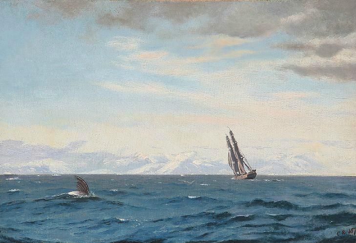 | Humpback whale and sailing ship in the Davis Strait. | |