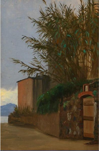 Italian street scene with a view towards the sea.