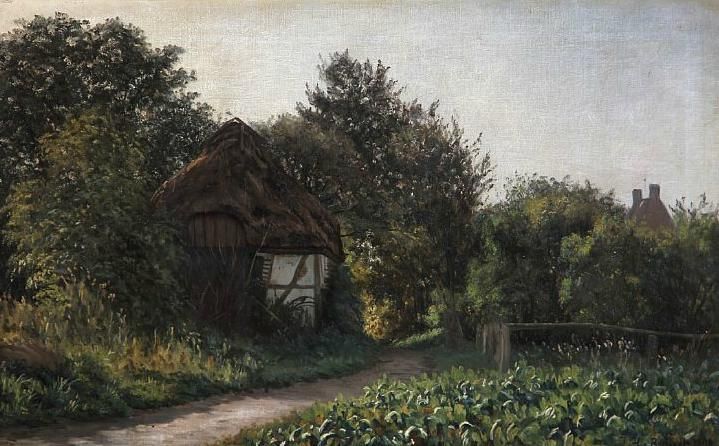 A thatched barn near a garden on Falster, Denmark.