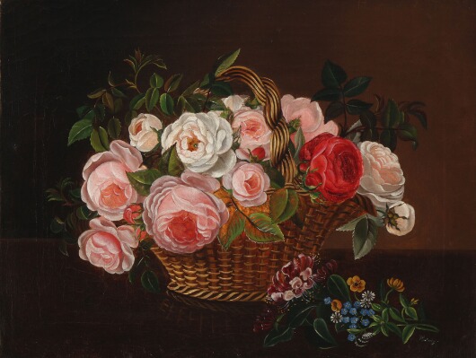 Still life with a basket of roses