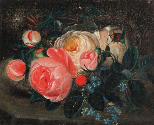 Still life with roses and forget-me-nots