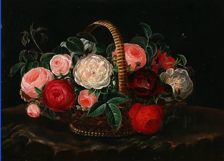 Still life with roses in a basket