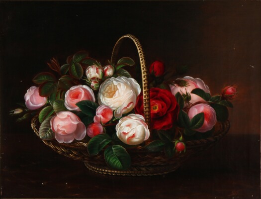 Still life with roses in a wicker basket