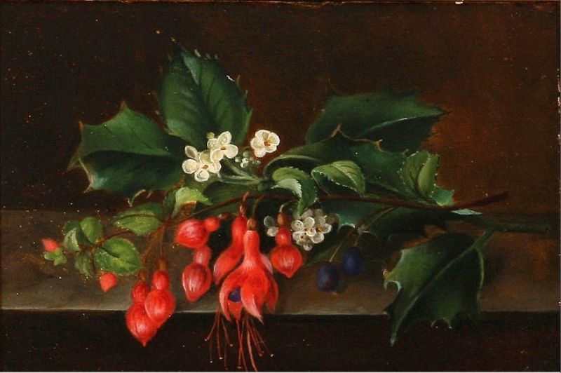 Fuchsia and thorn branches on a frame