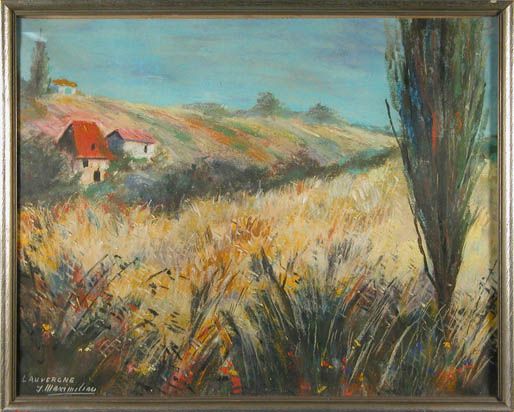 Blick in eine hügelige, südländische Landschaft unter sommerlichem Himmel