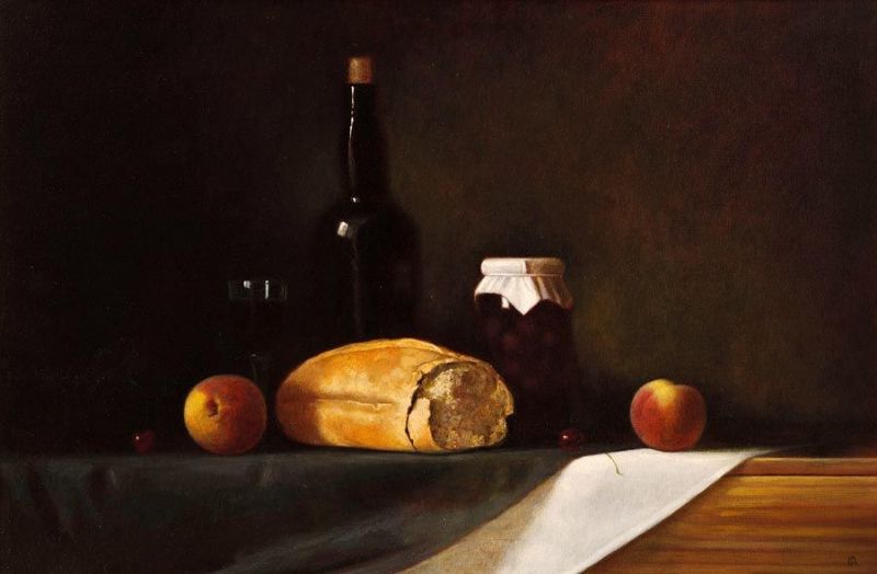 Still Life with Bread and Peaches