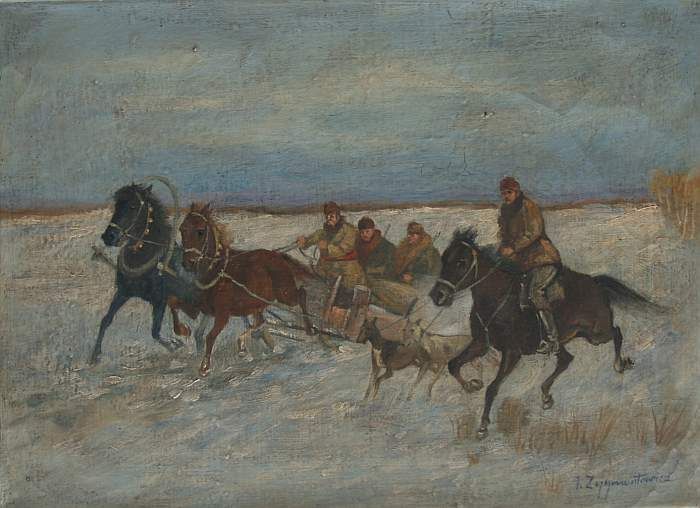 Jagd in winterlicher Steppe