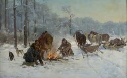 MYŚLIWI PRZY OGNISKU