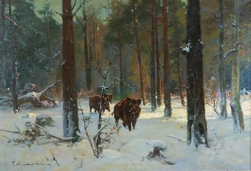 Pejzaż zimowy z dzikami