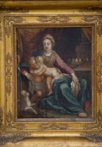 Madonna con bambino e San Giovannino e vassoio con frutta
