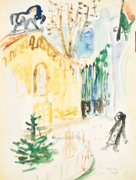 Synagogue, 1936, On the reverse: Gate (sketch)