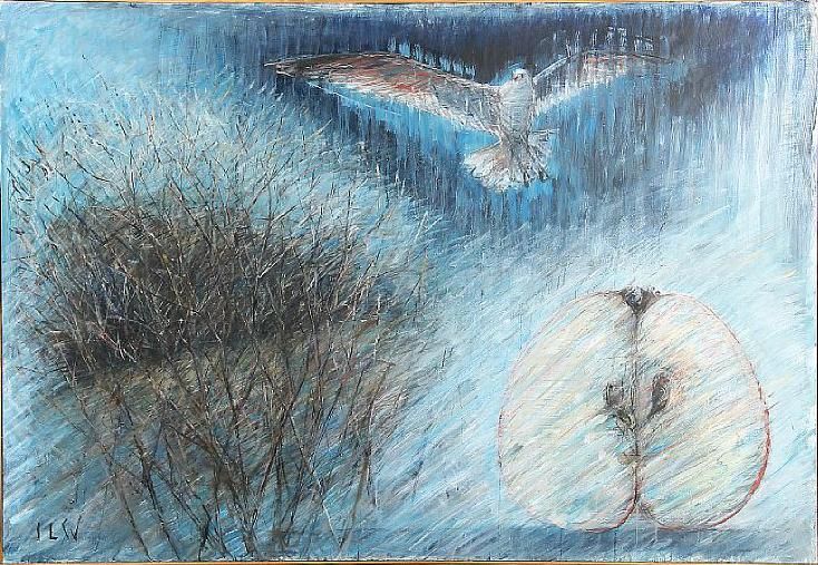 Landskab med måge + halvt æble