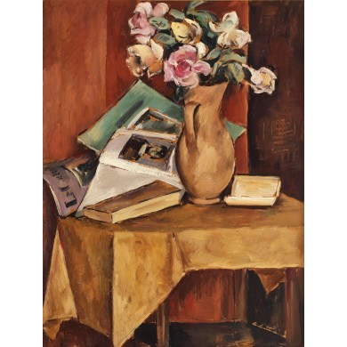 Natură statică cu flori și cărți de artă