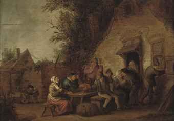 Peasants carousing outside a tavern