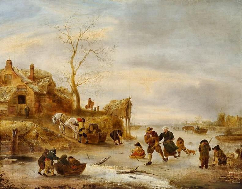Skaters in a Dutch winter landscape