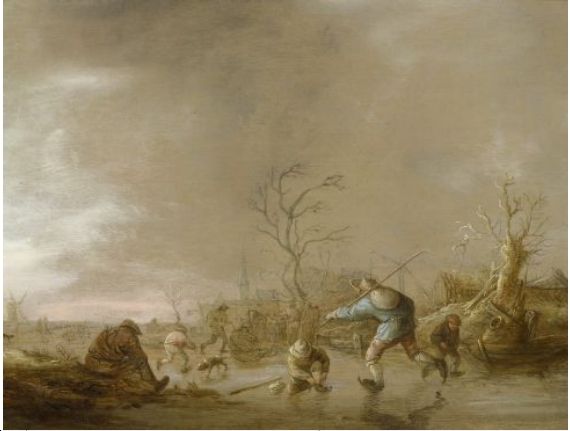 Winter landscape with skaters.
