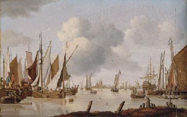 Dutch shipping off an estuary with a threemaster