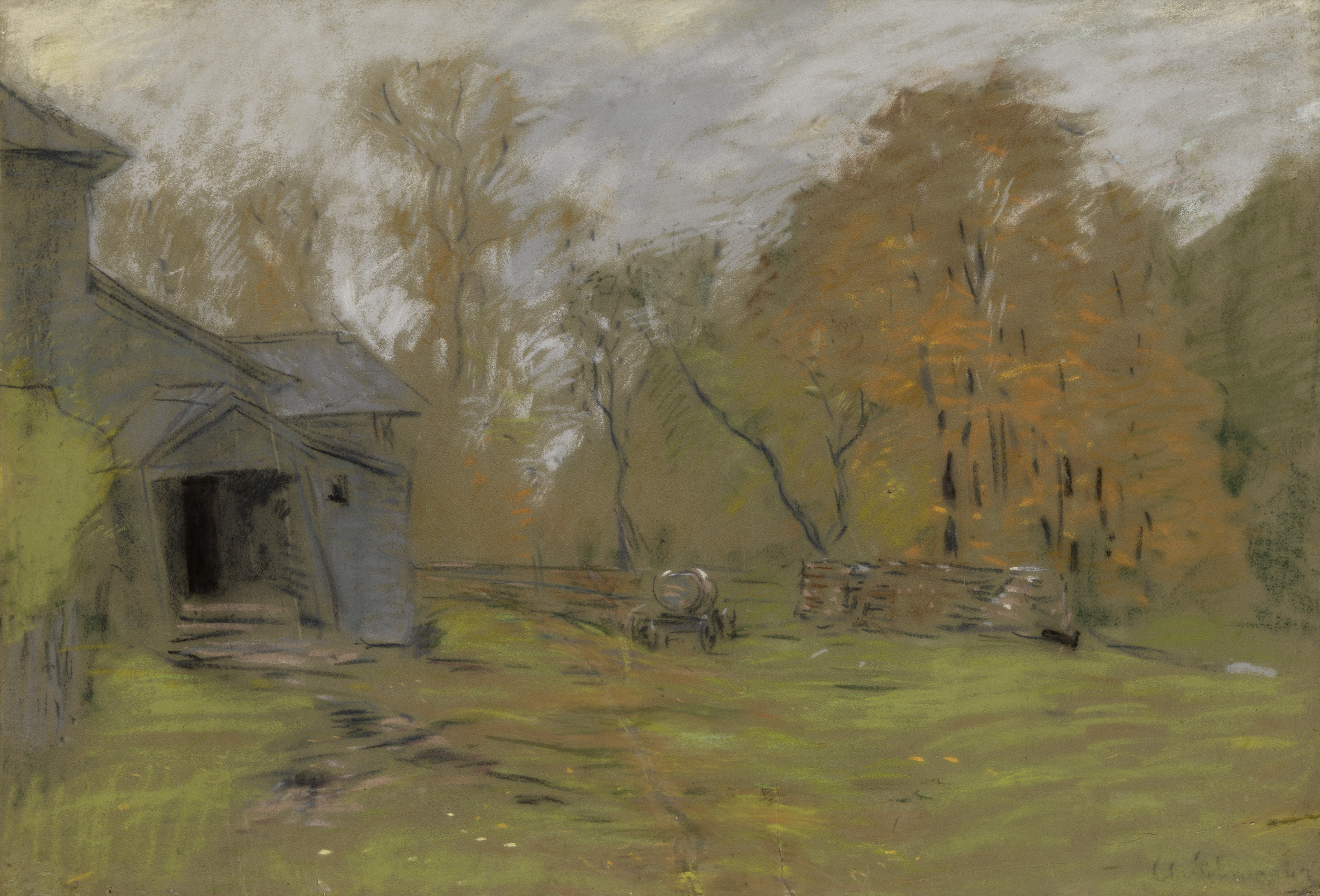 Pastel and charcoal on paper, laid on cardboard