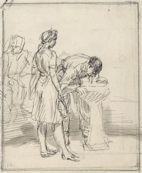 | Pen and dark brown ink and wash on cream wove paper. | |