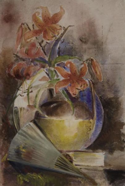 Still Life with Asiatic Lillies and Fan c.1880’s