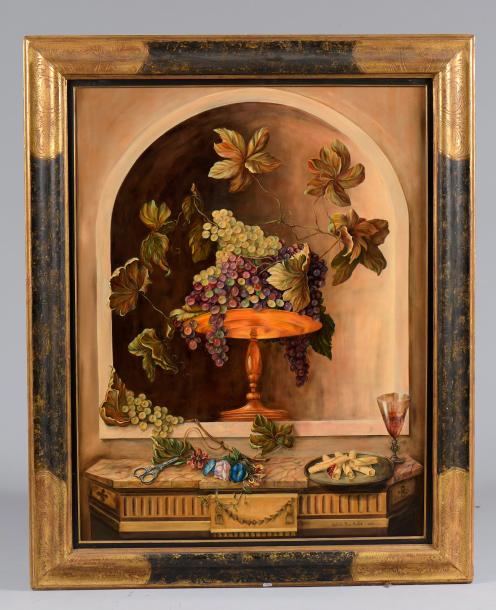 | Nature morte à la coupe de fruits et nature morte au bouquet de fleurs. | |