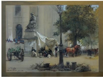 | Campement d'artilleurs place de la Bourse en juin 1871 | |