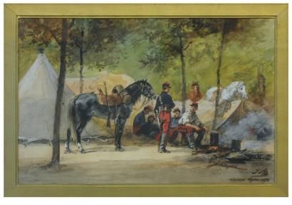 Campement de cavaliers sur les Champs Elysées