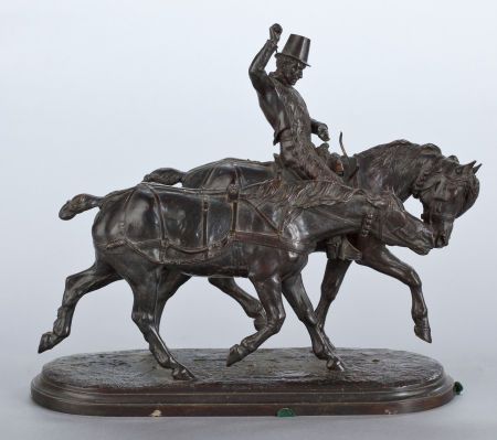 A FRENCH PATINATED BRONZE FIGURAL GROUP