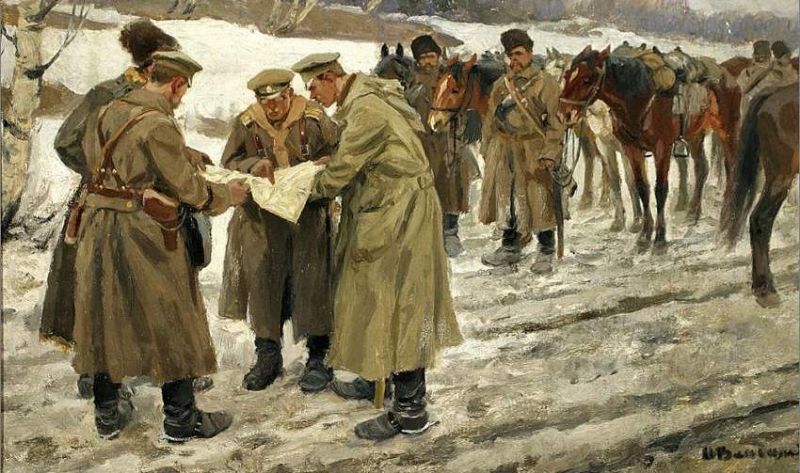 | Troups of Kornilov outside Petrograd in August 1917 | |