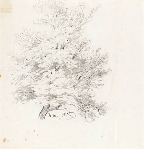 Studies of trees; a double-sided drawing