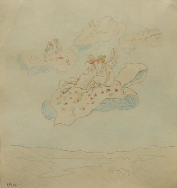 Kärlekspar på moln.