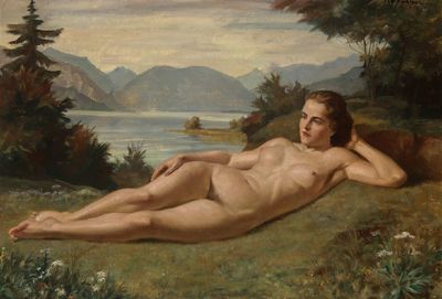 Lying Female Nude, with Lake Atter in the Background