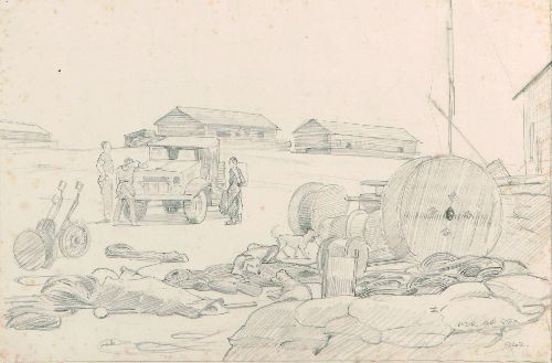 | 23 L/M section Hut: with Tackle etc. El Dab'a (Drums of Cable - Barrow etc April 1942, Western Desert | |