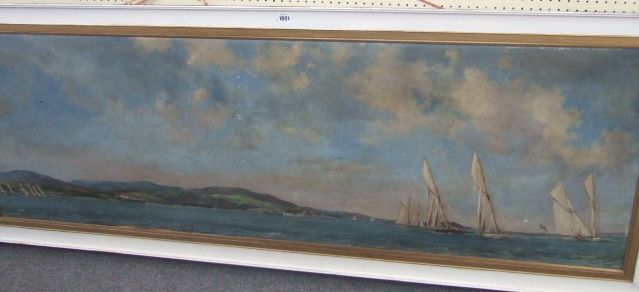 | Shipping off the coast near the Dunbartonshire Hills, near the Gourock shore, with a Holland Amerika Liner, H.M.S. Warspite | |