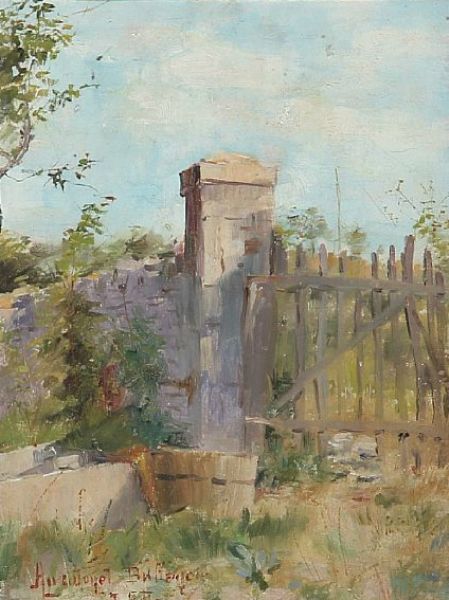 Summer day at a gate. Signed J. Adler with dedication "Au colonel B...