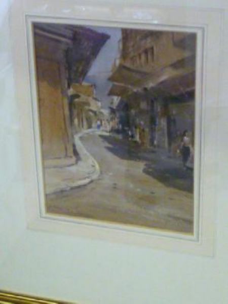 | Watercolor and pencil with scratching out, and heightened with white, framed | |