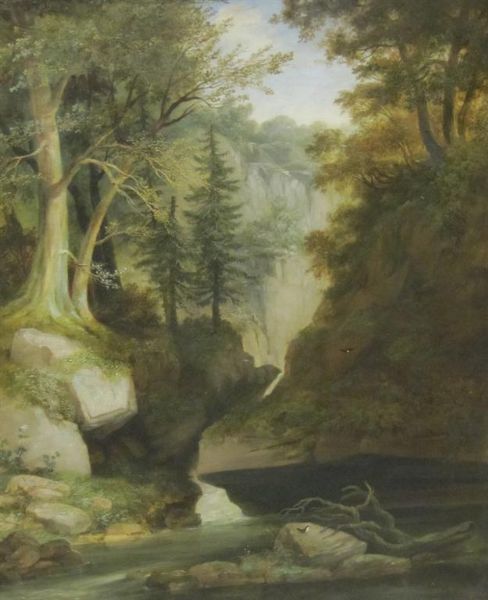 A wooded river landscape