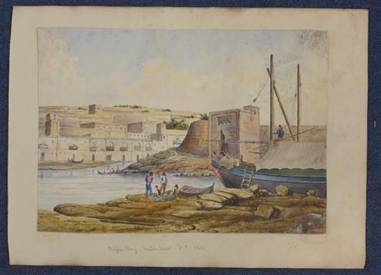 Bighi Bay, Malta harbour; Fort St Elmo and HMS Vengeance of Corfu