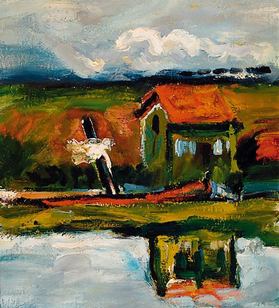 Kleines Bauernhaus am Ufer