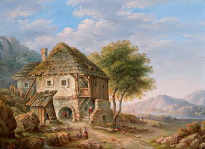 House on a River Bank with Figures