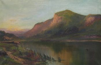 A mountainous landscape with a lake