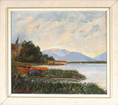 Abendstimmung am Ufer der Fraueninsel im Chiemsee