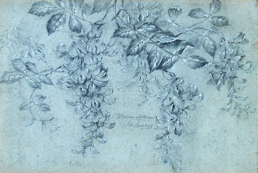 | Monochrome watercolour and body white, on grey paper, framed and glazed | |