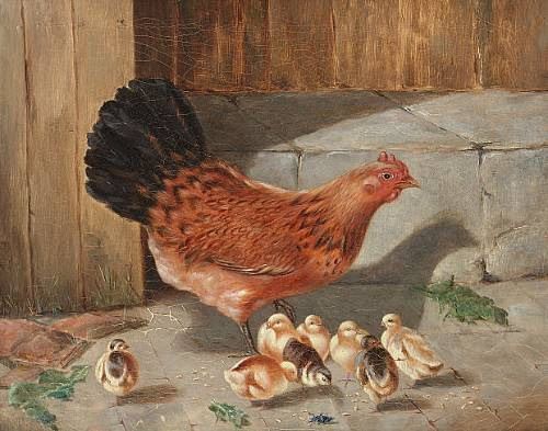 A hen with her chicks