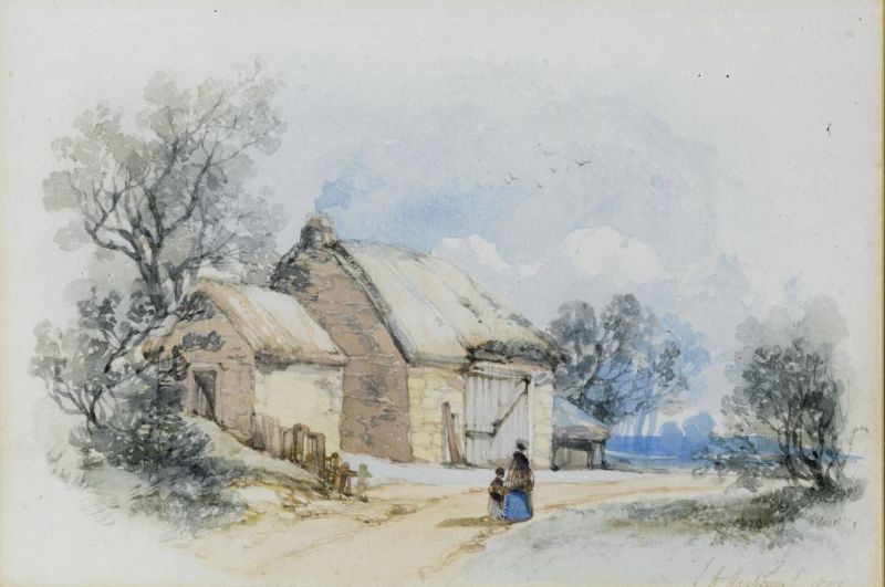 FIGURES ON A ROAD PASSING A BARN; FIGURES AT A CASTLE GATE
