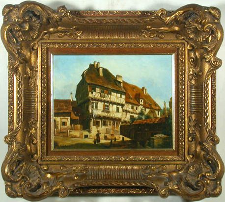 Blick auf ein mächtiges, mittelalterliches Fachwerkgehöft mit dreistöckigem Haupthaus